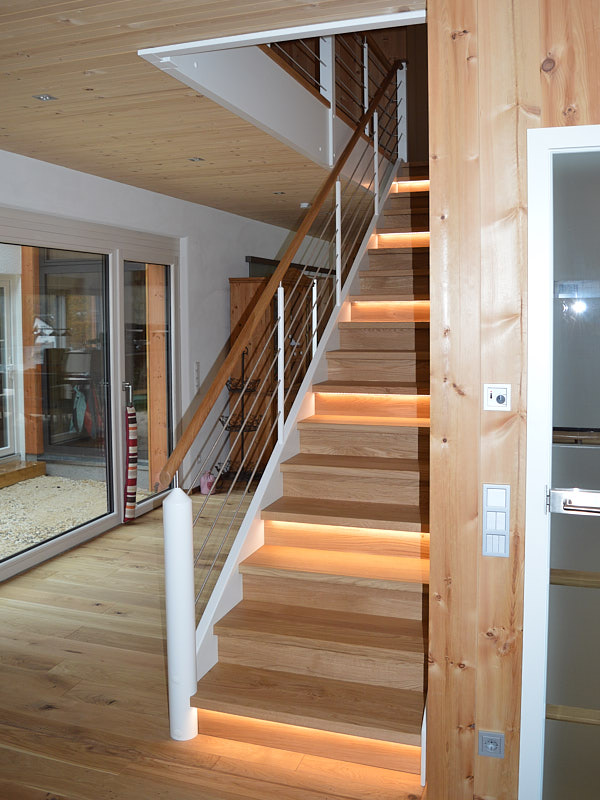 Holz als natürlicher Werkstoff. Treppen zum Anfassen und Wohlfühlen. Stufen zum barfuß laufen. Sie strahlen Wärme aus und gehören zu den beliebtesten Treppen in Wohnräumen. Der Phantasie sind hier keine Grenzen gesetzt – wir bringen das Holz in die richtige Form und setzen mit hochwertigen Lackierungen die richtigen Akzente.